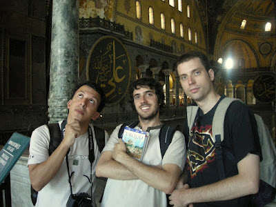 También tuvimos oportunidad de ver todo lo típico del lugar: Santa Sofía, La Mezquita Azul, La Torre de Galata, El Palacio de Topkapi, la cisterna.... Hasta nos metimos en un extraño lugar donde las cucarachas del baño no nos impidieron disfrutar de unas agradables caladas a una pipa de agua.